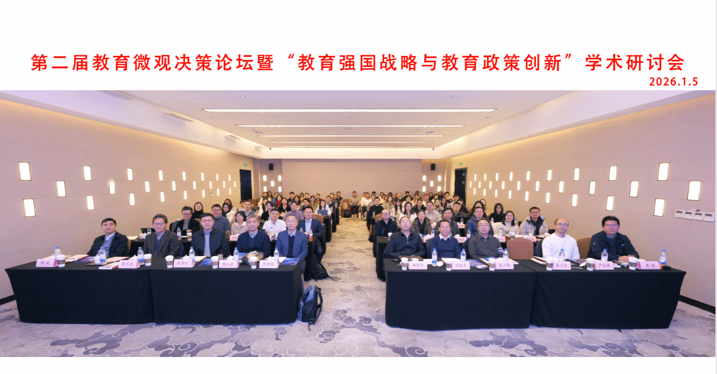2026年1月5-6日,第二届教育微观决策论坛暨“教育强国战略与教育政策创新”学术研讨会在南京大学举行。我院教育政策与管理研究所所长陈涛教授应邀参会,并在大会作题为《区域战略转移驱动下的产学研合作》的学术报告,围绕国家区域发展战略背景下高等教育与产业协同创新问题分享研究成果。