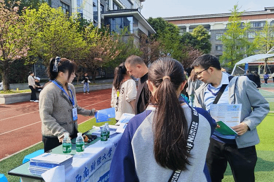 3月28日,公共管理学院本科招生宣传工作组走进成都市香山中学、西北中学,参加由川考生高考服务中心组织的“2026年高校入校园活动”,帮助广大考生及家长全面了解西南财经大学的办学特色与专业优势,科学规划志愿填报。活动吸引了众多考生与家长参与,现场交流气氛热烈。