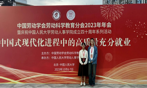 2023年10月6日至7日,由中国劳动学会劳动科学教育分会主办、中国人民大学劳动人事学院承办的中国劳动学会劳动科学教育分会2023年年会在中国人民大学召开。此次线下年会汇聚了来自全国各地劳动科学领域众多知名的专家学者。我院2022级劳动经济学专业硕士研究生王淳和黄明慧均在导师谢鹏鑫副教授的指导下,参加年会征文并受邀作分论坛论文汇报。